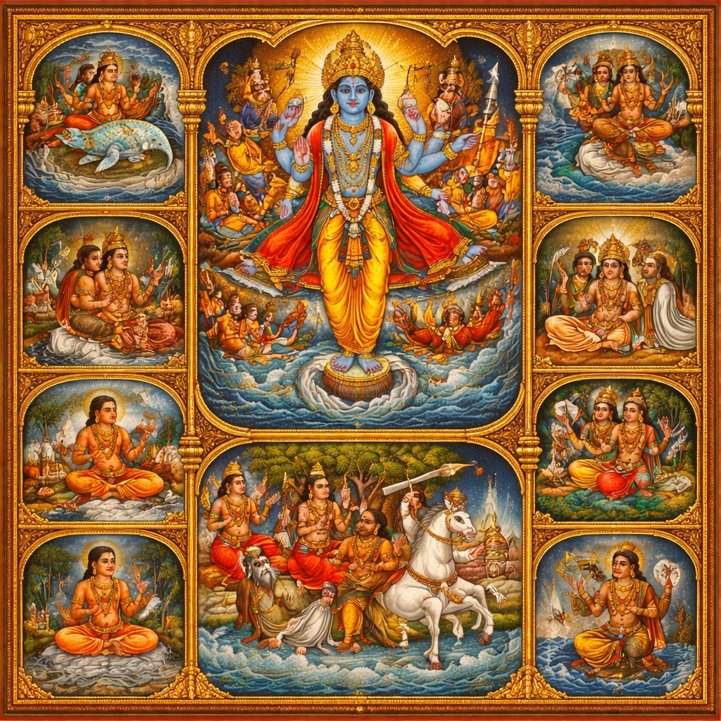 The opening section narrating the divine incarnations (avataras) of Vishnu, cosmic creation myths, and the foundational theology of the Agni Purana.