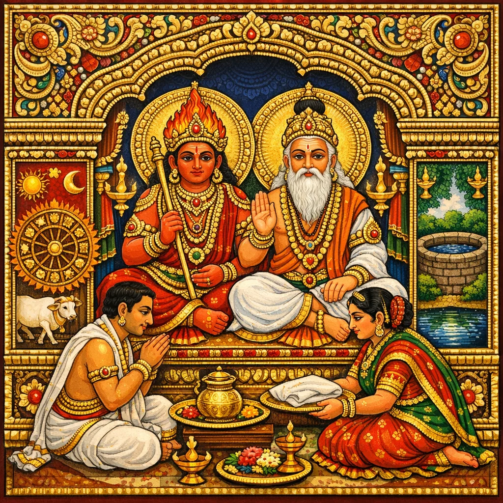 يعمل عنوان هذا الفصل بوصفه علامة انتقالية تُشير إلى انعطافٍ عقائدي نحو تعليمٍ على نمط dāna-śāstra. ويذكر النص اختلافاتٍ في روايات العنوان الفرعي (قراءات تُبرز «اليُمن/حُسن الطالع» مقرونًا إمّا بـ«زوجٍ حسنٍ من المنافع» أو بـ«الفهم الصحيح»). ووفق المنهج الموسوعي في أغني بورانا، كثيرًا ما تدل مثل هذه العناوين على الانتقال من الثناء الموضوعي إلى التعريف الإجرائي. وهنا يُمهِّد السرد للقسم التالي الذي يضع التصنيف الرسمي للصدقة—iṣṭa و pūrta—بإدراج الخطاب ضمن إطار تفسيري منضبط: فالعطاء (dāna) ليس تراكمًا اعتباطيًا لأفعالٍ تُضاف بلا تمييز، بل هو dharma محكوم بقواعد، وثمرته تتوقف على الاقتران الصحيح للمكان والزمان والمستحق والنية. لذا يقوم هذا الفصل بدور «عقدة فهرسية» في طبقة Dana-mahatmya، موائمًا الدافع التعبدي (śraddhā) مع الدقة الشاسترية.