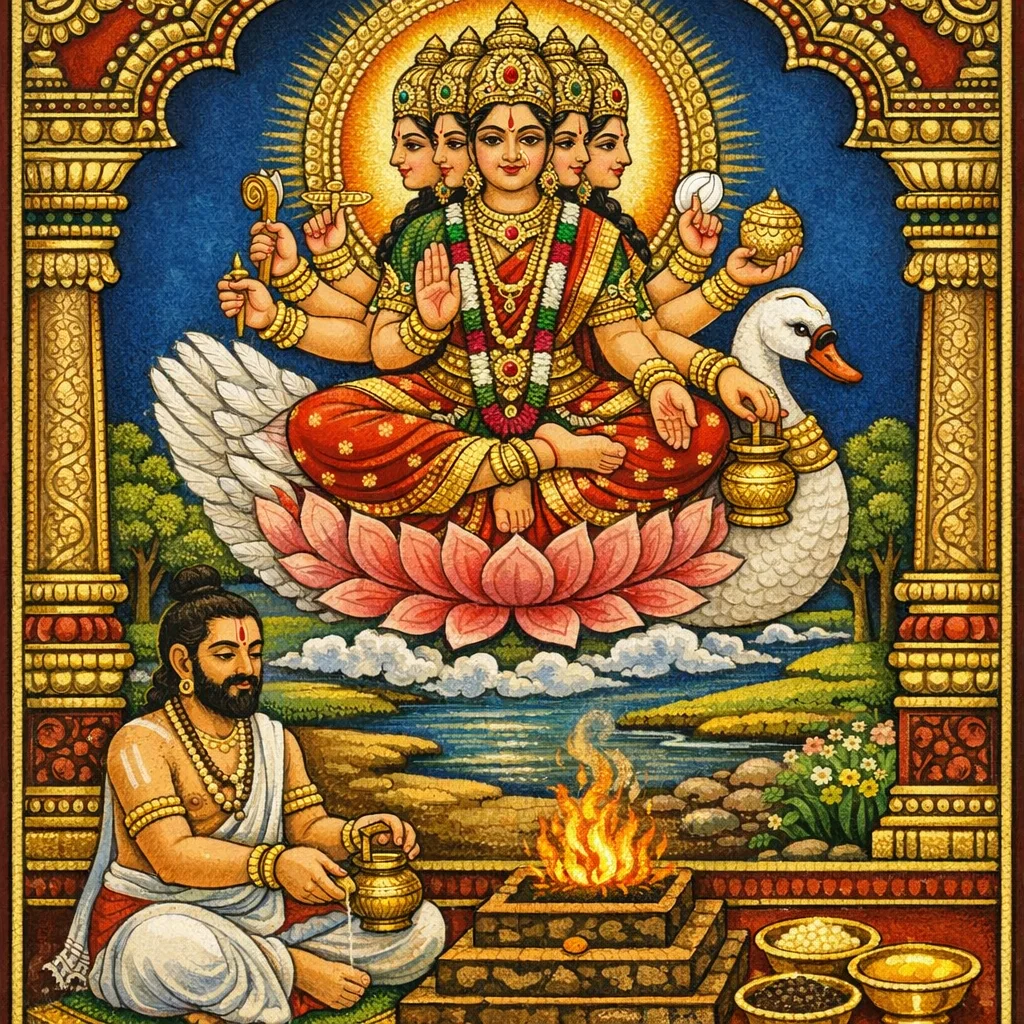 يبدأ الرب أغني بعرضٍ إجرائيٍّ وميتافيزيقيٍّ لعبادة السَّندهيَا (sandhyā) مُقَرِّرًا أن البراناڤا «أوم» (praṇava) هو جوهر جميع طقوس المانترا وعلامة تمامها. ثم يرفع الثالوث—أوم، والمهَاڤيَاهْرِتي (bhūḥ, bhuvaḥ, svaḥ)، والسافيتري/الغاياتري (Sāvitrī/Gāyatrī)—بوصفه «فم» برهمن، ويأمر بالدرس الدائم والترديد المنضبط (japa) طريقًا للتطهير وبلوغ برهمن. ويربط الفصل أعداد الجَپا المتدرجة (7/10/20/108/1,000/100,000/10,000,000) بالثمار الروحية والكفّارات، ويقرن الجَپا بالهوما (homa)، ولا سيما هوما السمسم (tila-homa)، وبالصيام لمعالجة الذنوب. كما يورد طبقات تقنية للطقس: إعلانات ṛṣi–chandas–devatā، وقوائم viniyoga لِـ deva-upanaya/japa/homa، ومواضع nyāsa على نقاط الجسد، وتأملات dhyāna لألوان وهيئات الغاياتري، ومواد القرابين بحسب المقاصد (śānti للسكينة، āyus لطول العمر، śrī للبركة، vidyā للمعرفة، وغيرها). ويختتم بدمج prāṇāyāma، وmārjana، وaghamarṣaṇa، وآيات ڤيدية (āpo hi ṣṭhā، drupadādīni، pavāmānī) في مسارٍ متكامل لتطهير السندهيَا—تركيبٍ أغنيٍّ يجمع المانترا والنَّفَس والطقس.