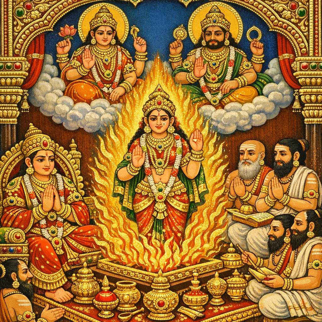 ثم قال الإلهان مِترا وفَرُونا هذا القول: «يا عارفةَ الدَّرما، بهذا التواضع وضبط النفس لديكِ».
