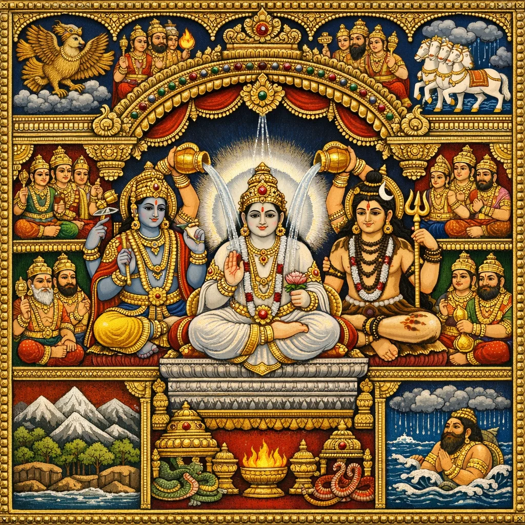 وأجرى عليه طقس التتويج المقدّس لِـ«برجنيَة» أحد الآدِتْيَة، فجعلَه سيّدَ البحار والأنهار ومطرِ السحاب.