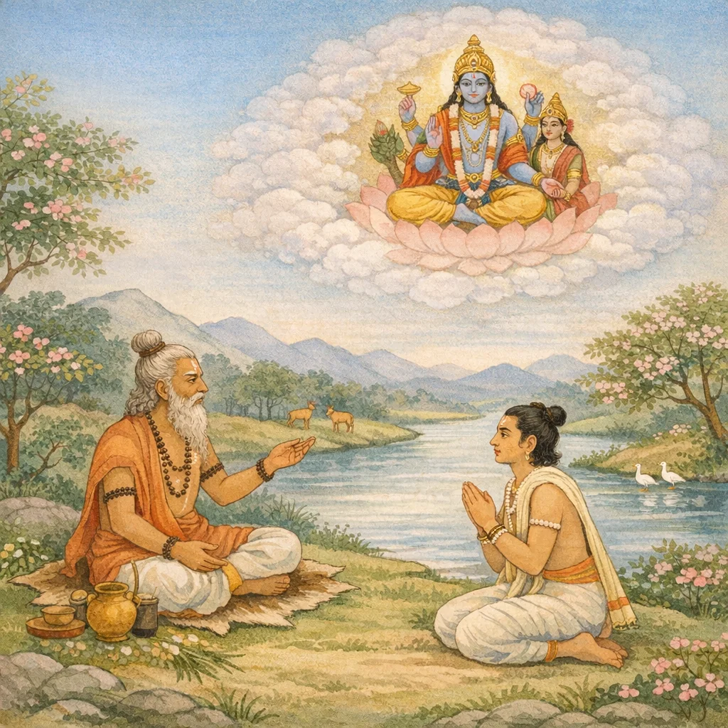 مَن كان ضابطًا لنفسه، متحرّرًا من الرذائل، عارفًا حقًّا بجوهر شاسترات السلوك القويم—وقد تطهّر بهذه الخصال المتنوّعة—فإنه يكتسب سماتَ إنسانٍ ذي طبيعةٍ إلهية.