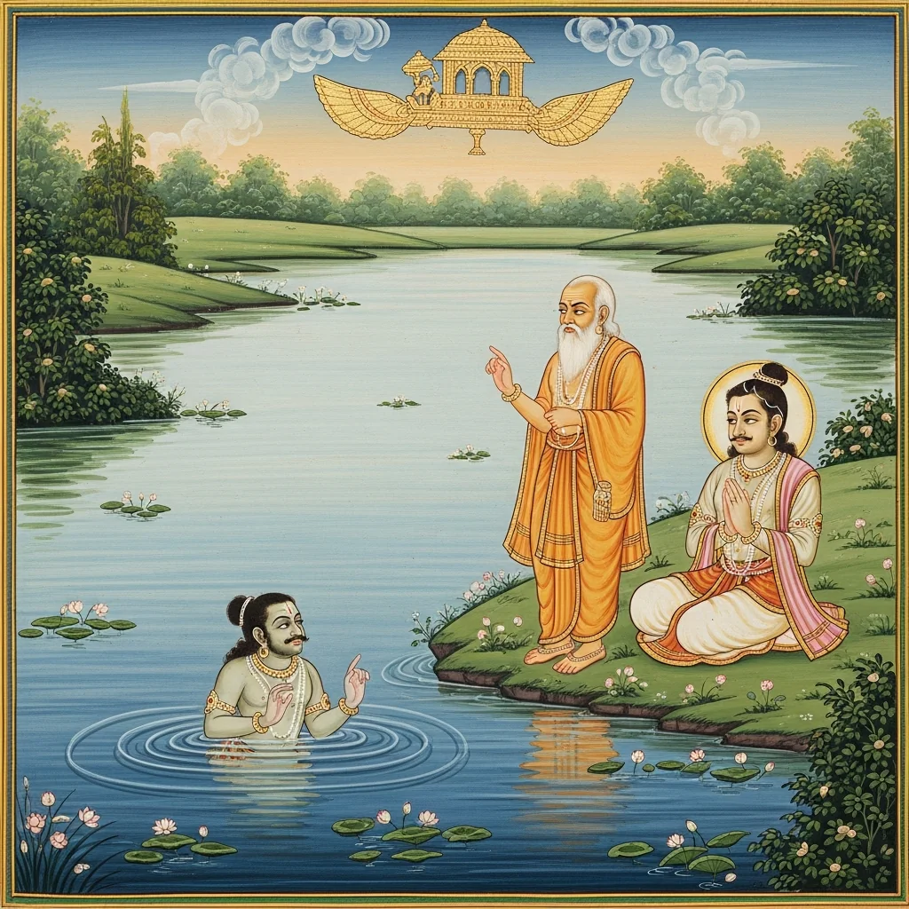 Bahūdaka-kuṇḍa Māhātmya and the Instruction on Guṇas, Karma, and Detachment (बाहूदककुण्डमाहात्म्यं तथा गुणकर्मवैराग्योपदेशः)