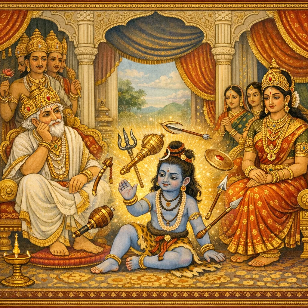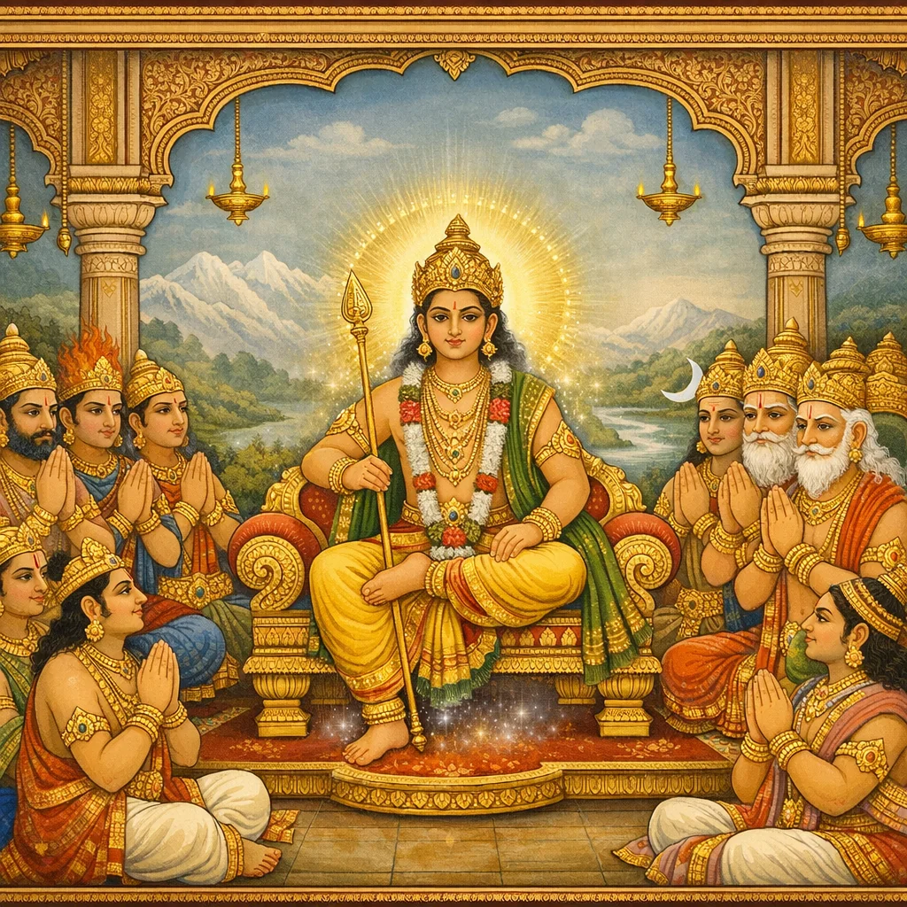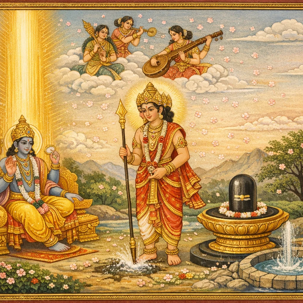 Skanda’s Senāpati-Abhiṣeka at the Mahī–Ocean Confluence (महीसमुद्रसंगमे स्कन्दाभिषेकः)