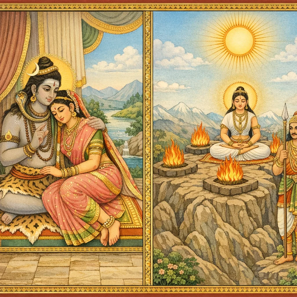 पार्वतीतपः–ब्रह्मचारिवेषधरीश्वरीक्षण–स्वयंवरप्रसंगः | Pārvatī’s Austerity, Śiva’s Brahmacārin Test, and the Svayaṃvara Episode