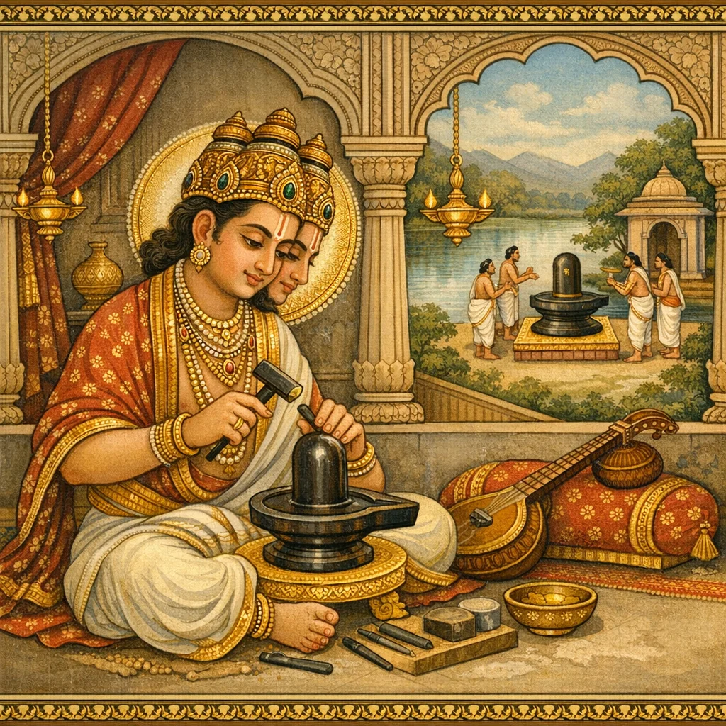 जयस्तम्भ-स्थापनम् तथा स्तम्भेश्वर-लिङ्गप्रतिष्ठा (Installation of the Victory Pillar and the Stambheśvara Liṅga)