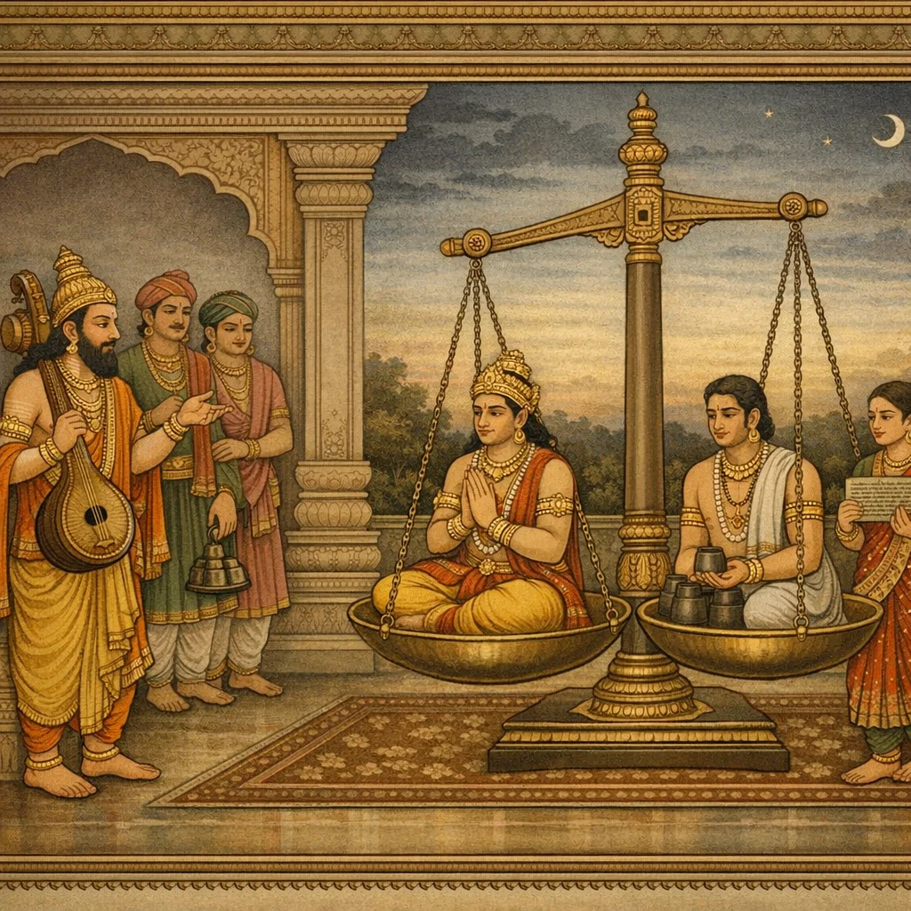 दानतत्त्व-व्याख्या (Doctrine of Dāna: Intent, Means, and Outcomes) / “Nārada Explains the Taxonomy of Giving”