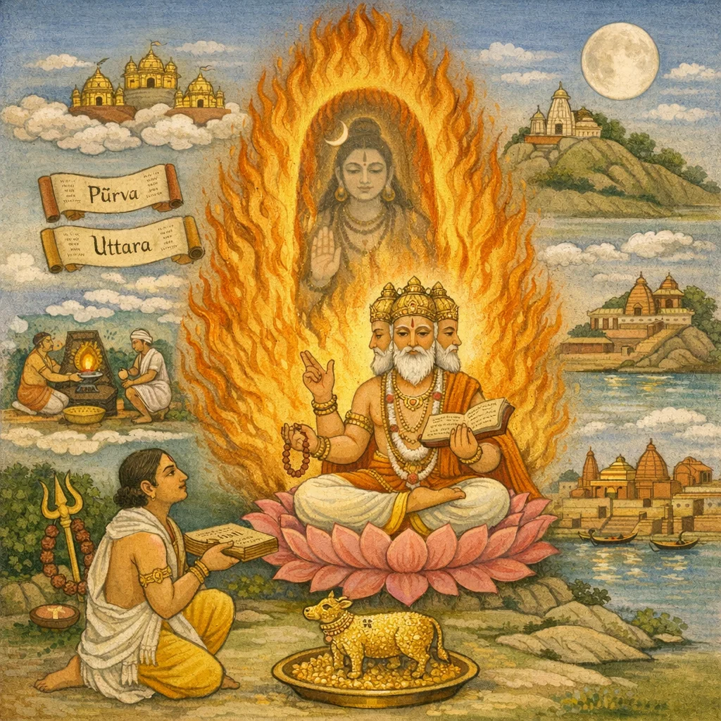 আৰু ‘লিঙ্গ’ নামৰ ৰূপত—অগ্নিলিঙ্গত অৱস্থিত হৈ—হৰ (শিৱ) ক’লে: “মোৰ বাবে ধৰ্মাদি সিদ্ধিৰ অৰ্থে এই বৃত্তান্ত অগ্নিকল্প-কথাৰ আশ্ৰয়ত আছে” ॥২॥