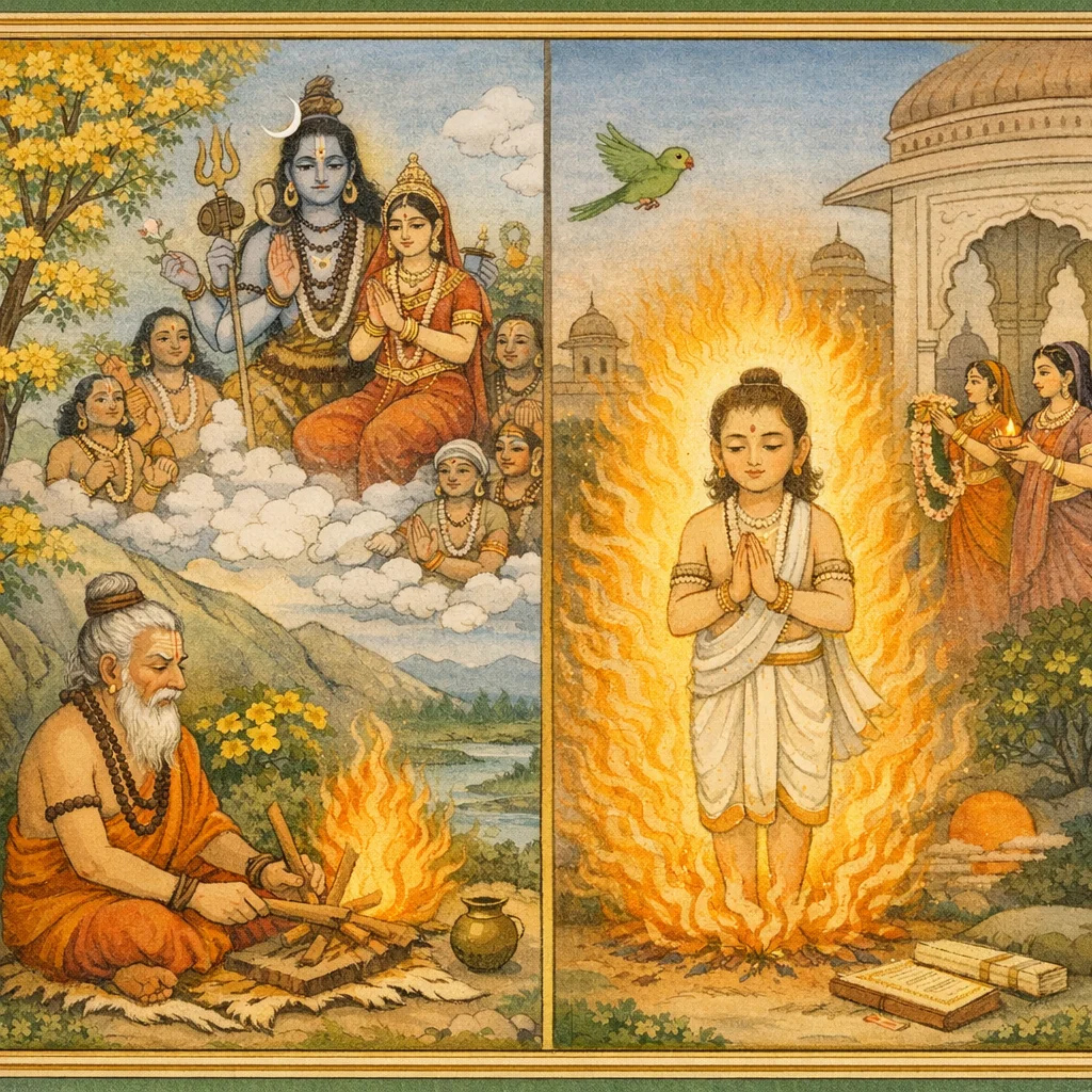 সমাহিত ব্ৰহ্মচাৰী হৈ তেওঁ উগ্ৰ তপস্যা আৰম্ভ কৰিলে; আৰু বাল্যতেই দেৱতা আৰু ঋষিসকলৰ মাজত পূজ্য মহাতপস্বী হ’ল।