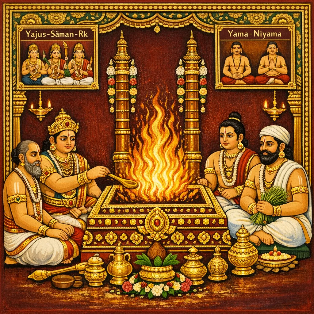যষ্টা যেন স্বয়ং যজমান হন; উদ্যোগের আরম্ভ ও প্রক্রিয়া যথাযথ জেনে কর্মে প্রবৃত্ত হন। সঙ্গে থাকবেন সतीর্থ্য, একগুরুবিশিষ্ট সহাধ্যায়ী, সভ্য এবং সামাজিক (অনুষ্ঠান-সহযোগী) জনেরা।