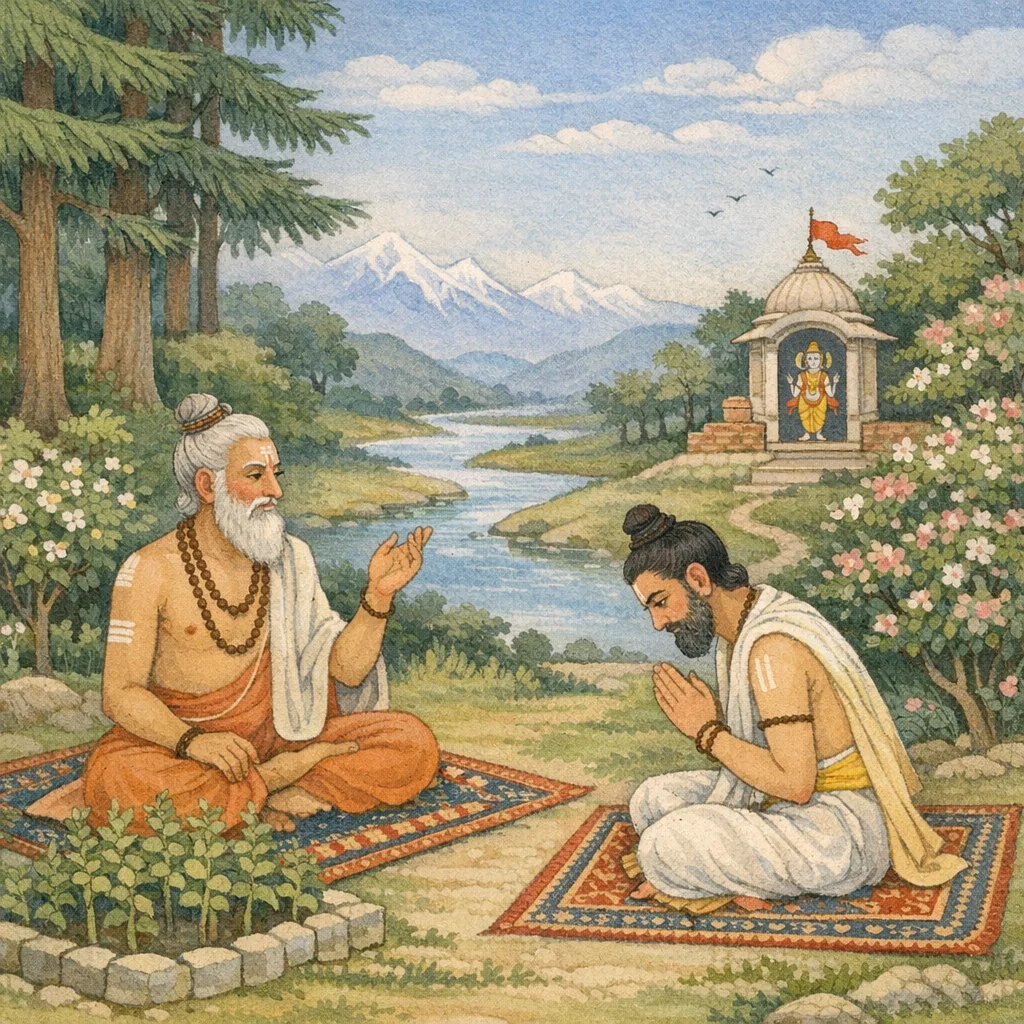 তিনি রণে ধনুর্বাণধারী বীর নহুষের নিকট গেলেন—ইন্দ্রের রথে আরূঢ়—সকল অস্ত্রধারীদের মধ্যে শ্রেষ্ঠ।