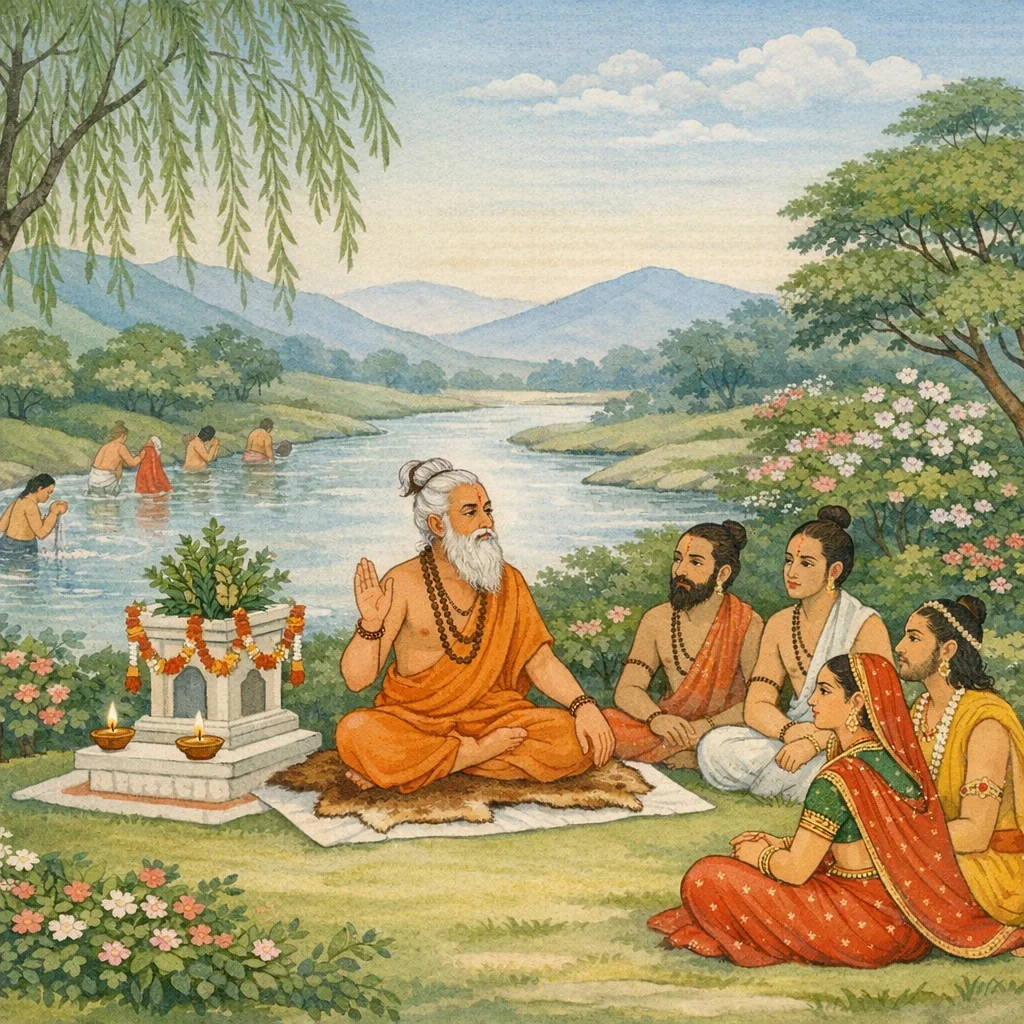 হে শুভে! পবিত্র অগ্নি, পিতা ও স্বামী/প্রভুকে কখনও ত্যাগ করা উচিত নয়। ব্রাহ্মণ, পুত্র ও ভৃত্য সর্বদা নিষ্ঠাবান থাকুক—এ সত্য, আমি পুনরায় বলছি, এ সত্য।