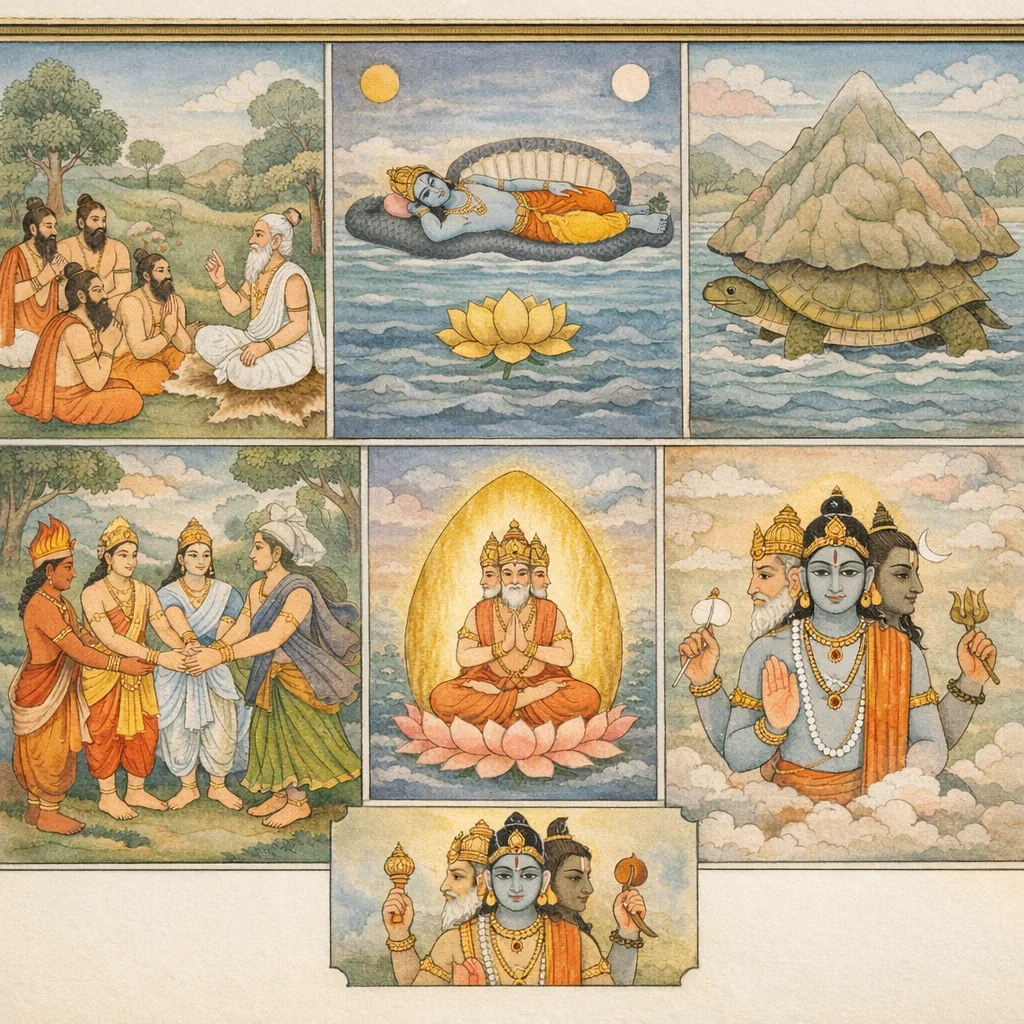 Śrī Kūrma sprach: „Mahēśvara ist der Höchste—unmanifest (avyakta), ewig, als vierfache göttliche Emanation (catur-vyūha) offenbar; grenzenlos und unermesslich, der innere Lenker, dessen Antlitz in alle Richtungen schaut (allgegenwärtig).“