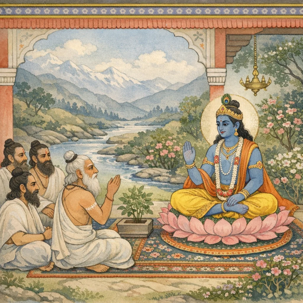 Das 72. Adhyāya des Pātāla-khaṇḍa versammelt Beispiele von Verehrern, die durch strenge tapas und unablässiges Mantra-japa von Kṛṣṇa — unter Einbindung des Kāma-bīja — siddhi, göttliche Schau und schließlich eine Wiedergeburt in Gokula/Nandavana als gopīs oder Diener erlangen. Die Erzählung führt durch benannte Weise und Kuhhirtinnen — etwa Ugratapā, Satyatapā, Haridhāma, Jābāli sowie Sunandā, Bhadra, Raṅgaveṇī — und betont Mantra-Formeln mit zehn, fünfzehn, achtzehn, zwanzig und fünfundzwanzig Silben sowie eine auf Vṛndāvana ausgerichtete dhyāna: rāsa, Flöte, gelbe Gewänder und die Vaijayantī-Girlande. Ein zentraler Lehrpunkt erscheint, als eine Asketin sich als Brahmavidyā bezeichnet, jedoch bekennt, dass Erkenntnis ohne prema-bhakti zu Kṛṣṇa unvollständig bleibt, und daraufhin ein Verehrungsverfahren übermittelt. Das Kapitel gipfelt in ausdrücklicher Gopāla-vidyā-Unterweisung und einer normierten Visualisierung einer leuchtenden Vṛndāvana-Insel; eine phalaśruti verheißt Befreiung und das Erreichen von Vāsudevas Wohnstatt durch Rezitation.