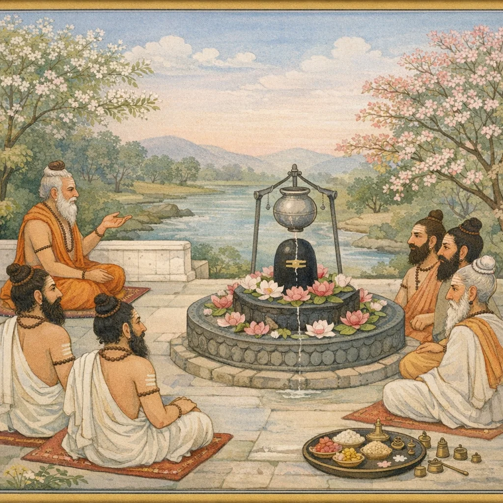 Wenn ohne erkennbare Ursache im Körper Unruhe und innere Verschiebung entstehen—und wenn irgendwo oder zu jemandem hin Anhaftung in Liebe (premā) und Kummer zu wachsen beginnen—so ist dies als bedeutsames Zeichen zu verstehen: unsichtbare Kräfte sind am Werk, die dazu rufen, bei Śiva Zuflucht zu nehmen und durch rechte Verehrung die innere Standfestigkeit wiederherzustellen.