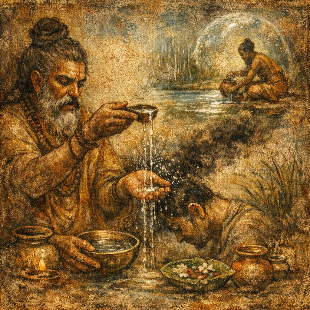 Devata: Āpaḥ (Waters), with implicit Sūrya as life-witness and sign of recovery