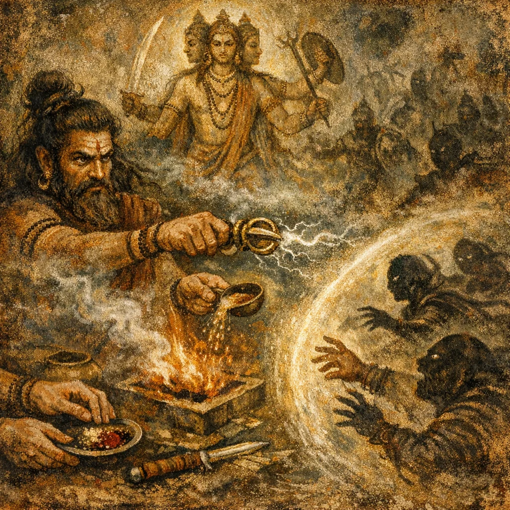Primarily aggressive (Abhicārika/Saṃgrāmika). It aims to coerce and crush enemies, though it also functions defensively by reversing hostile kṛtyā (witchcraft) back to the sender.