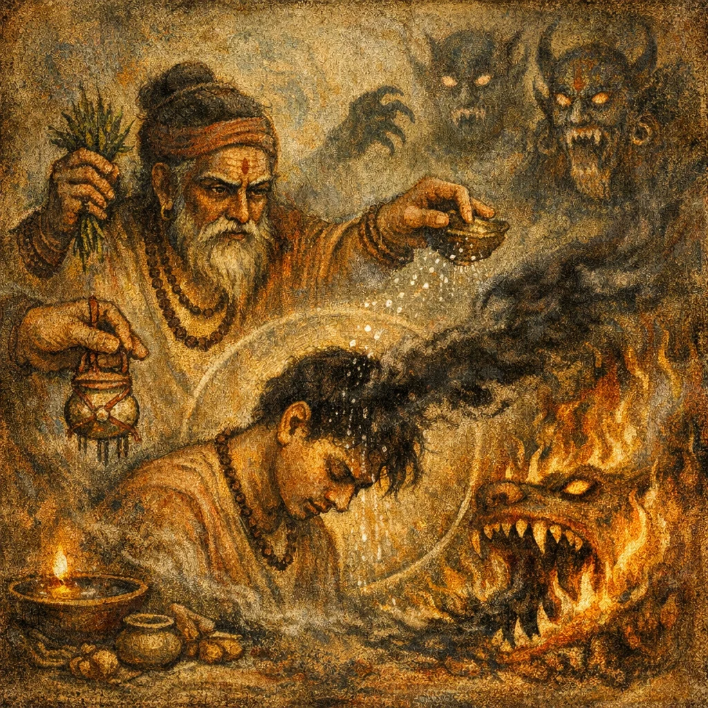 Prāṇa is treated as the decisive life-force. Commanding prāṇa to abandon the target functions as the final seal that turns expulsion into complete neutralization (marana-register).