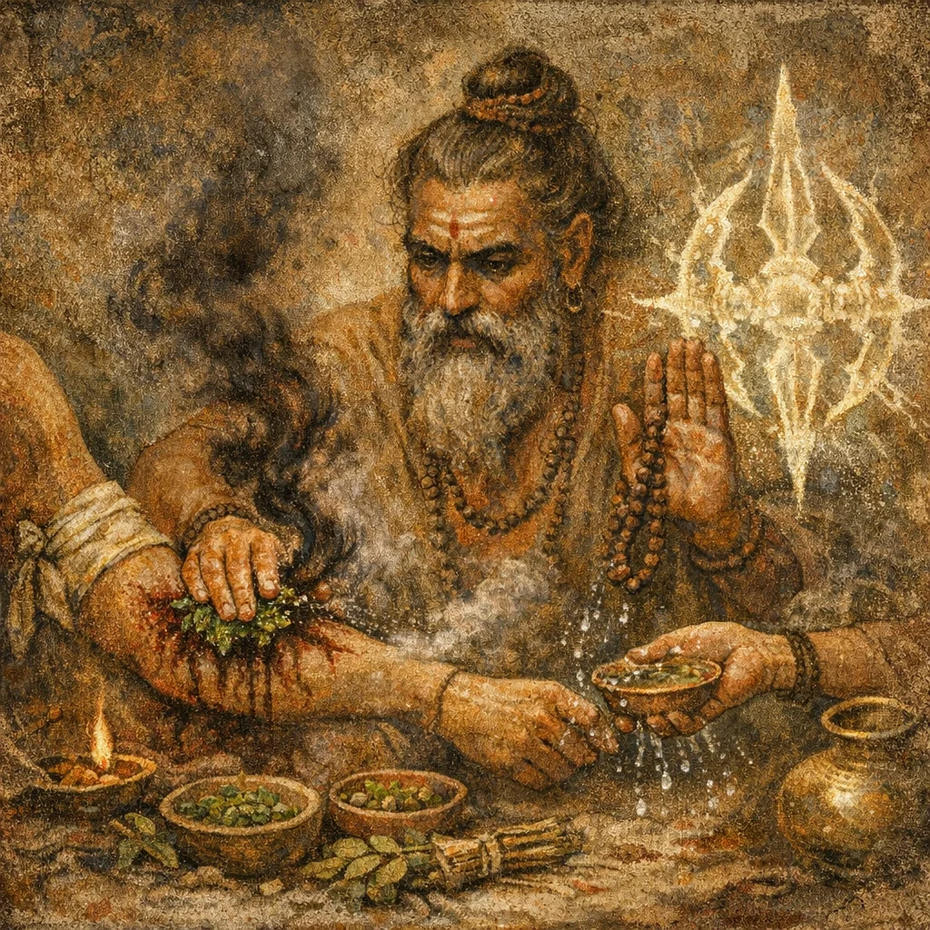 Devata: Bheṣaja (the Remedy) / the mountain-born healing power (implicit).
