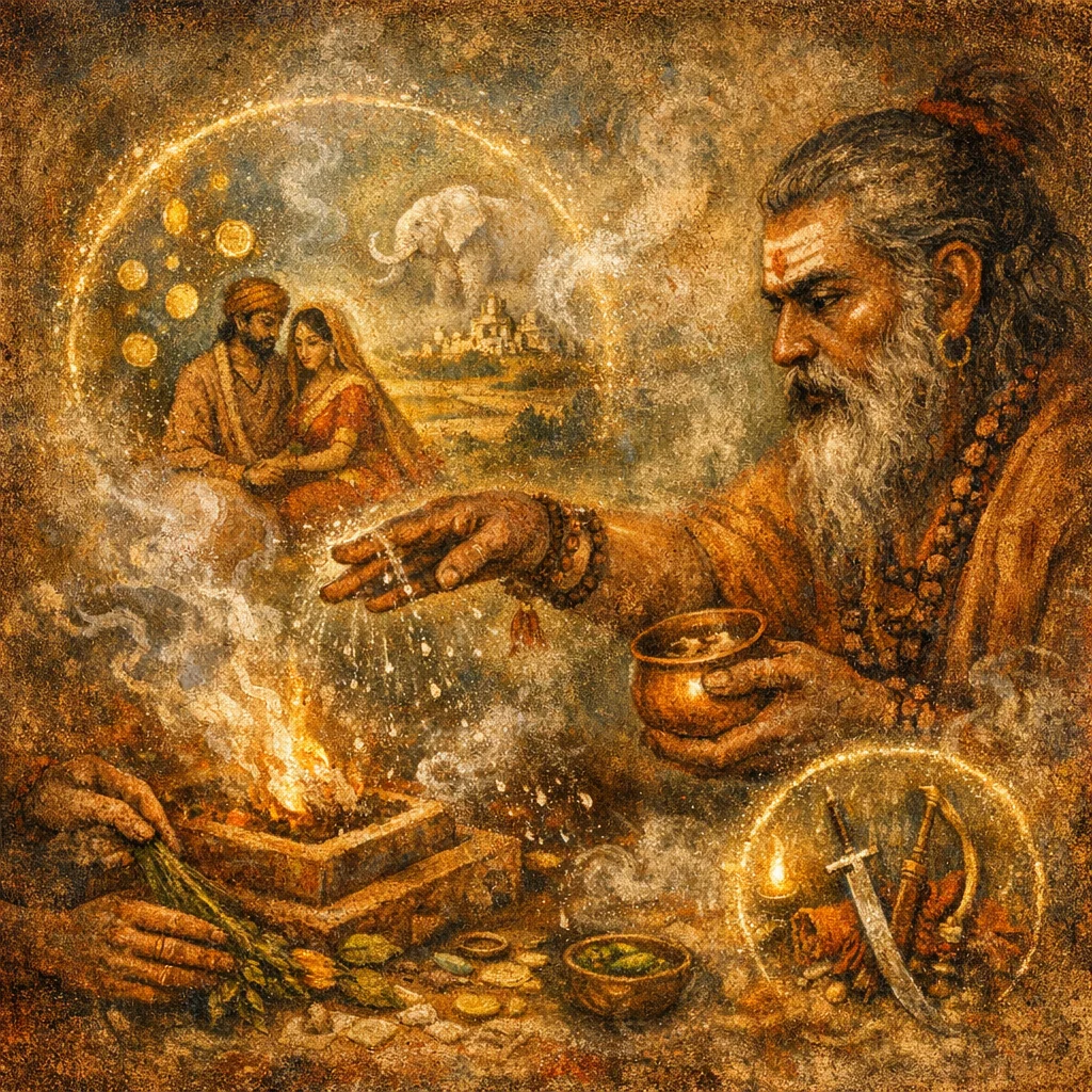 The language presumes a Soma-sacrificer, but it can be recited more generally as an Indra prosperity-and-obstacle-removal prayer, using simple ritual markers like clean grass (barhis) and a pledged gift (dakṣiṇā).