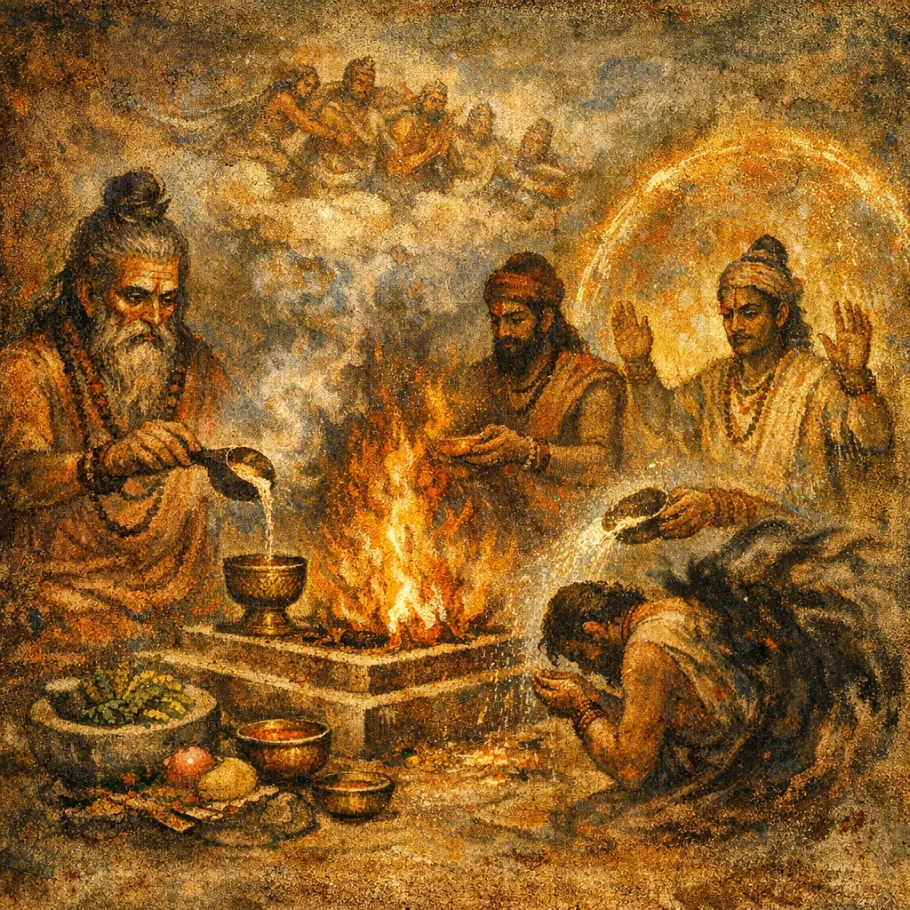 Indra is the main recipient who grants wealth and victory when pleased by soma; Agni is praised as the Hotṛ/Jātavedas who carries ghee offerings and ensures the sacrifice succeeds.