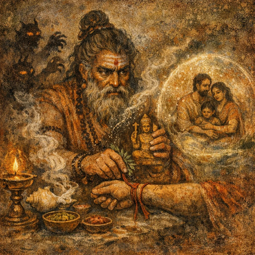 Chandas: Anuṣṭubh-like (protective formula style); exact scansion depends on recension/edition.