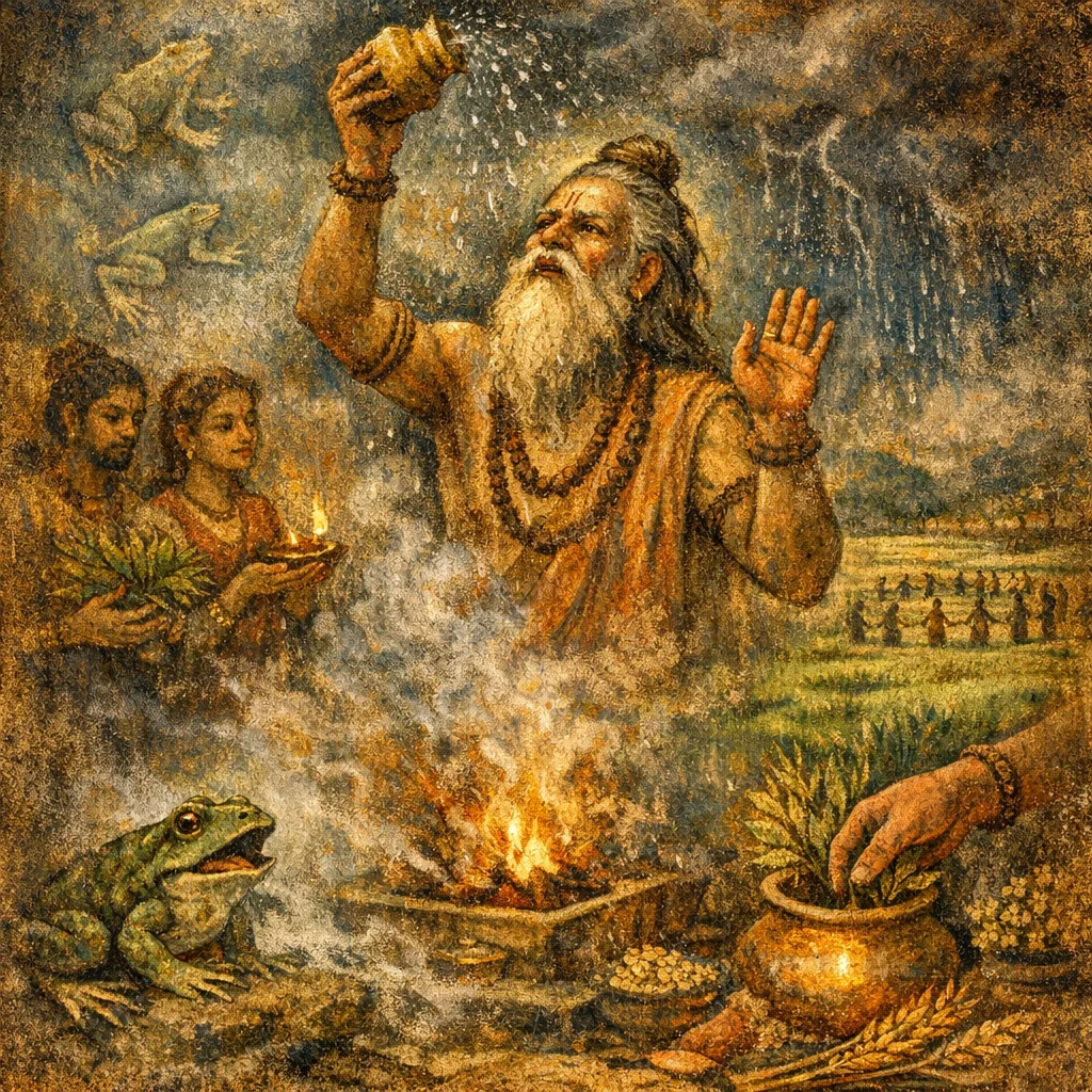 Devata: Parjanya/Varṣa (Rain) mediated through frogs as rain-messengers