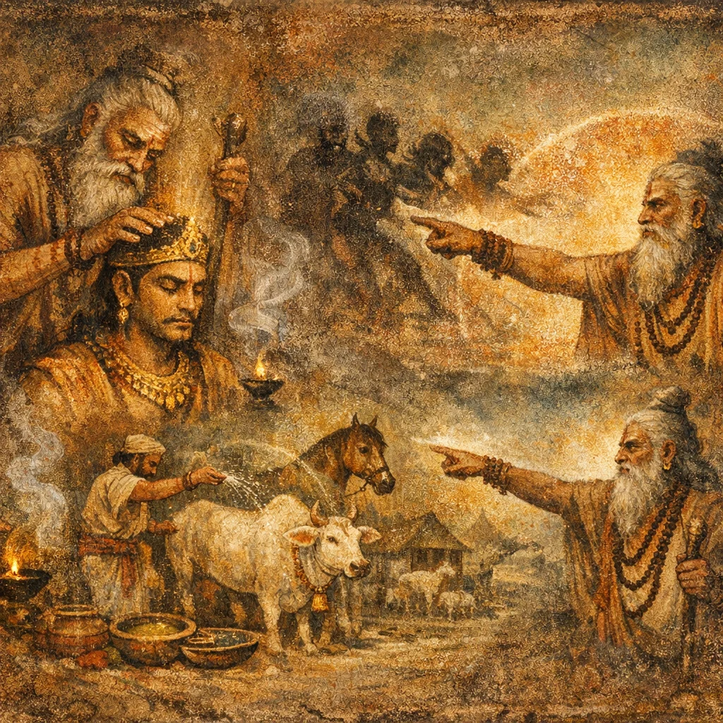 For him let Heaven and Earth, like two warm-milking kine, pour forth abundant good. Let this King be dear to Indra; dear to cattle, to the healing plants, and to the beasts of the field.