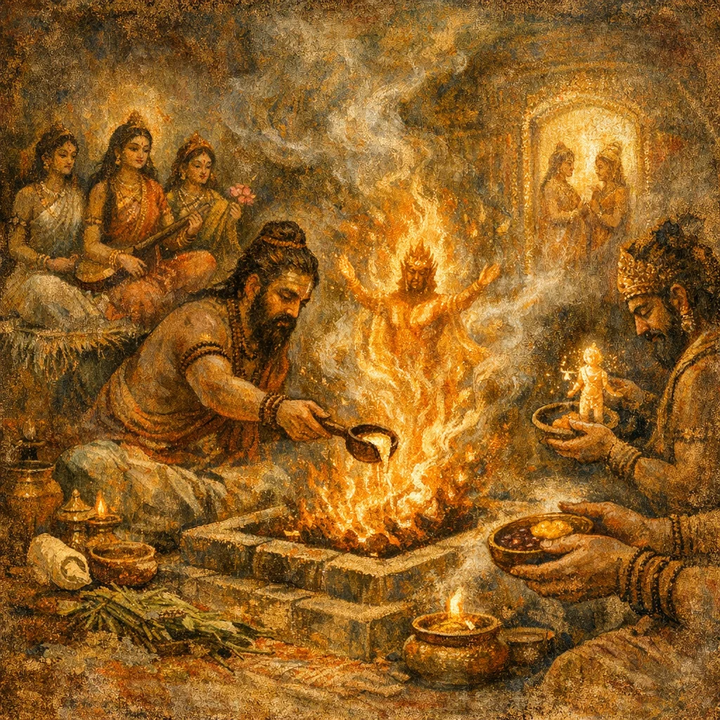 The Vasus represent a stable, wealth-bearing divine cohort; invoking Agni together with them frames the rite as well-founded and prosperity-oriented, not merely a private fire act.