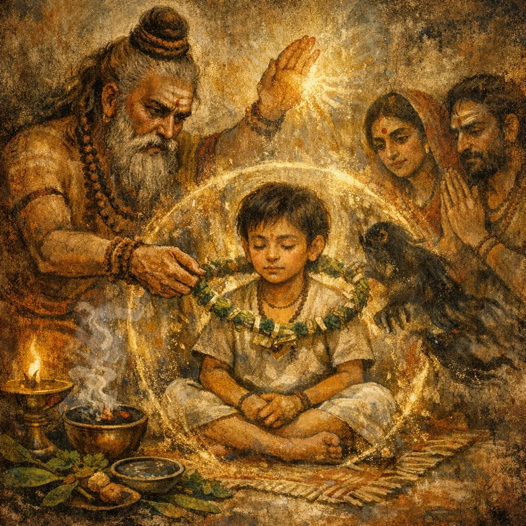 Born on the Tiger-day, a hero—asterism-born—being born, a well-heroed one: let him, as he grows, not slay the father; let him not, in any wise, harm the mother, the very birth-giver.