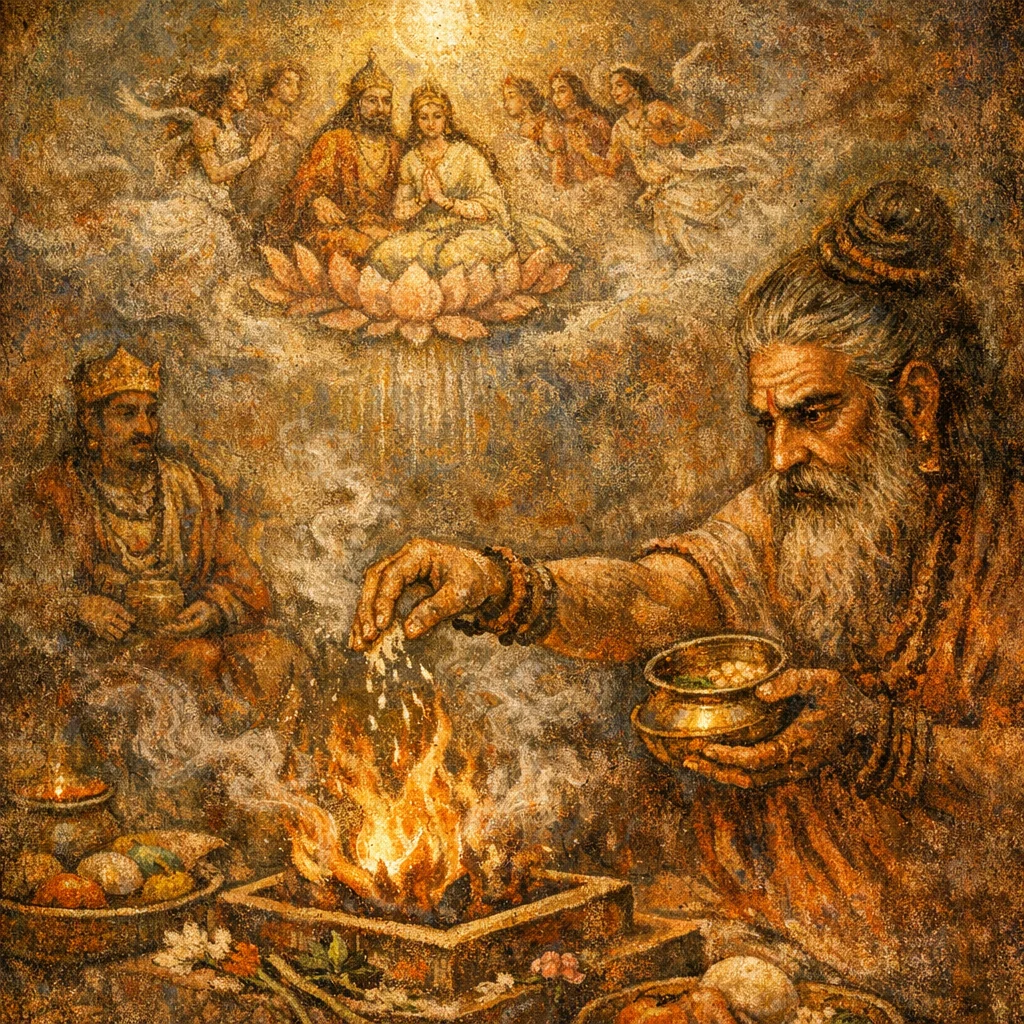 By pairing gods (Devas) and ancestors (Pitṛs), the hymn anchors the present community in both cosmic authority and lineage continuity, strengthening legitimacy and social stability.