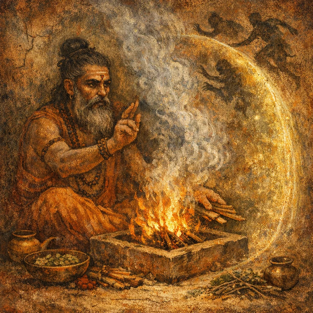 To rekindle life-force through Agni, protect the person from inner collapse and external attack, and explicitly avert Death’s claim by correct kindling and mantra-power.