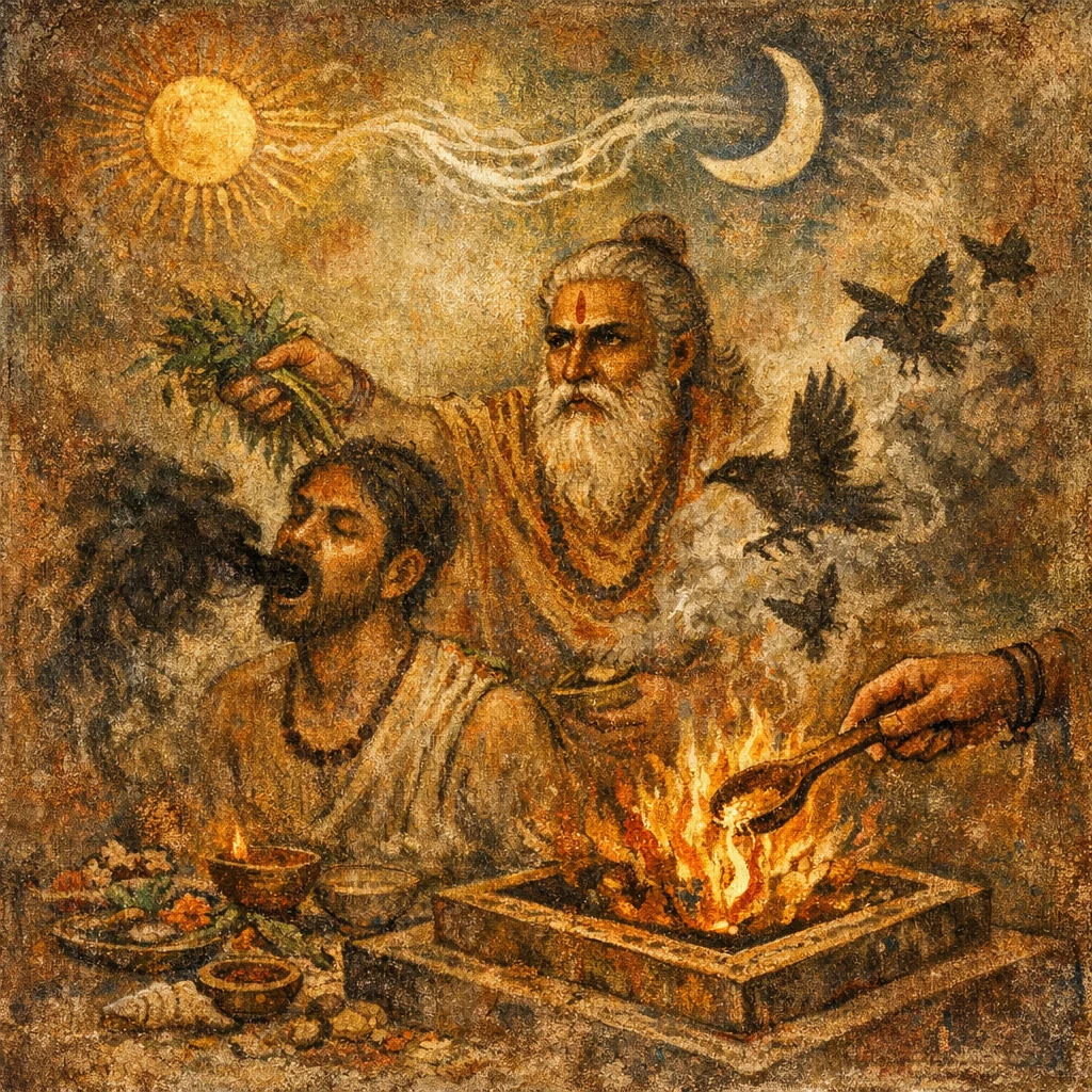 Devata: Sūrya and Candramas (as healers); disease-personification (Apaciti) as target