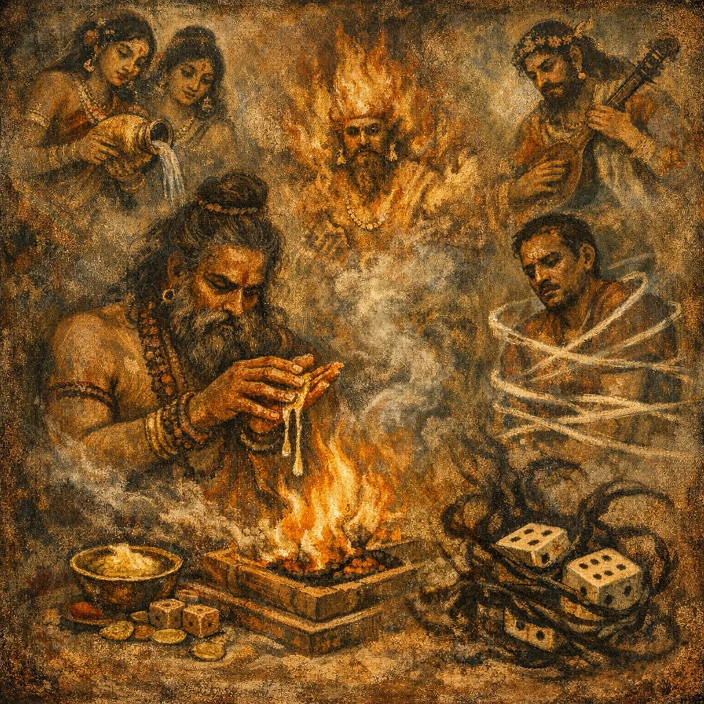 Devata: Babhru (dice-power) and Kali (personified losing throw/misfortune)