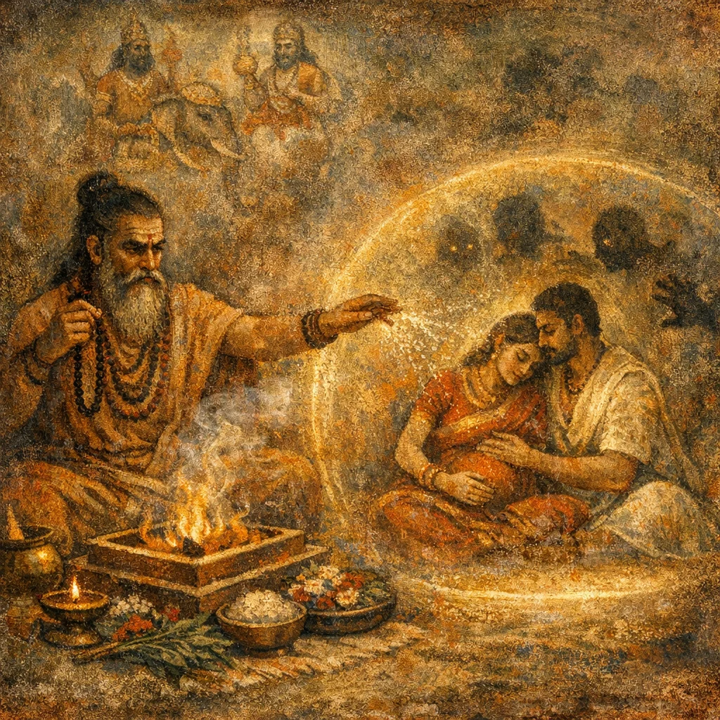 It concentrates fertility and generative vitality within the intended household/union so that rightful progeny are produced “here,” while anything belonging “elsewhere” is kept outside.