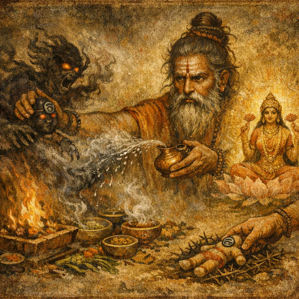 Devata: Pāpi Lakṣmī (personified evil fortune/blemish)