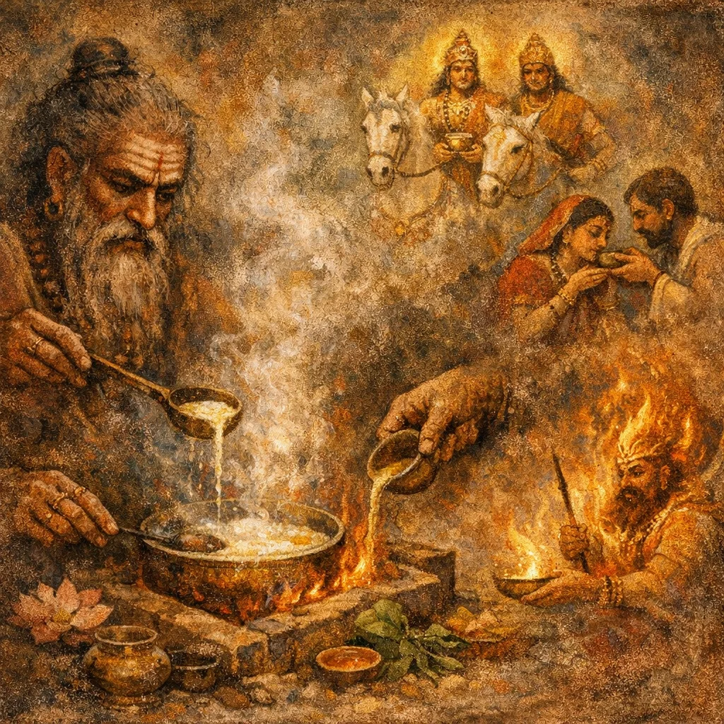 तप्तो वां घर्मो नक्षतु स्वहोता प्र वामध्वर्युश्चरतु पयस्वान्। मधोर्दुग्धस्याश्विना तनाया वीतं पातं पयस उस्रियायाः