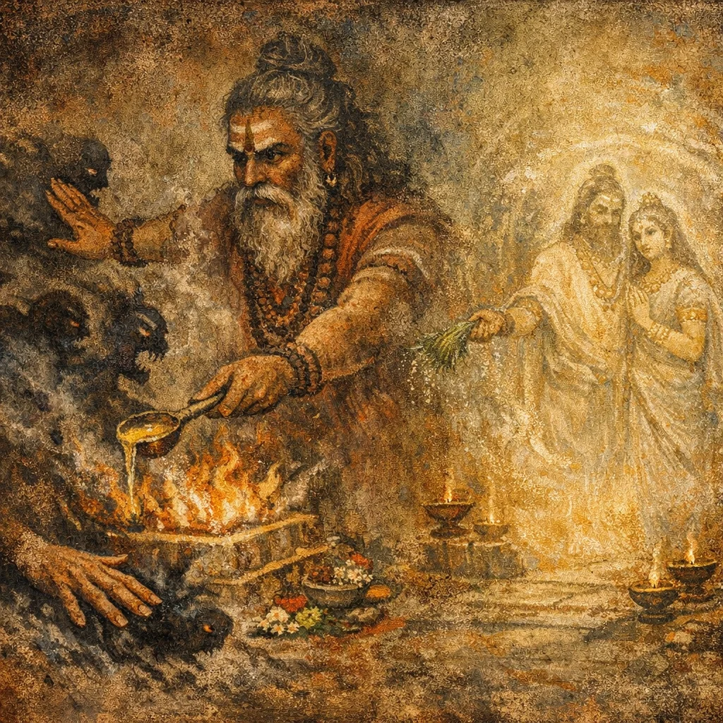Here Kāma is not primarily romantic love; it is Desire/Compulsion as a commanding force. The hymn treats Kāma as a power that can be directed to overpower rivals and make one’s intention prevail.