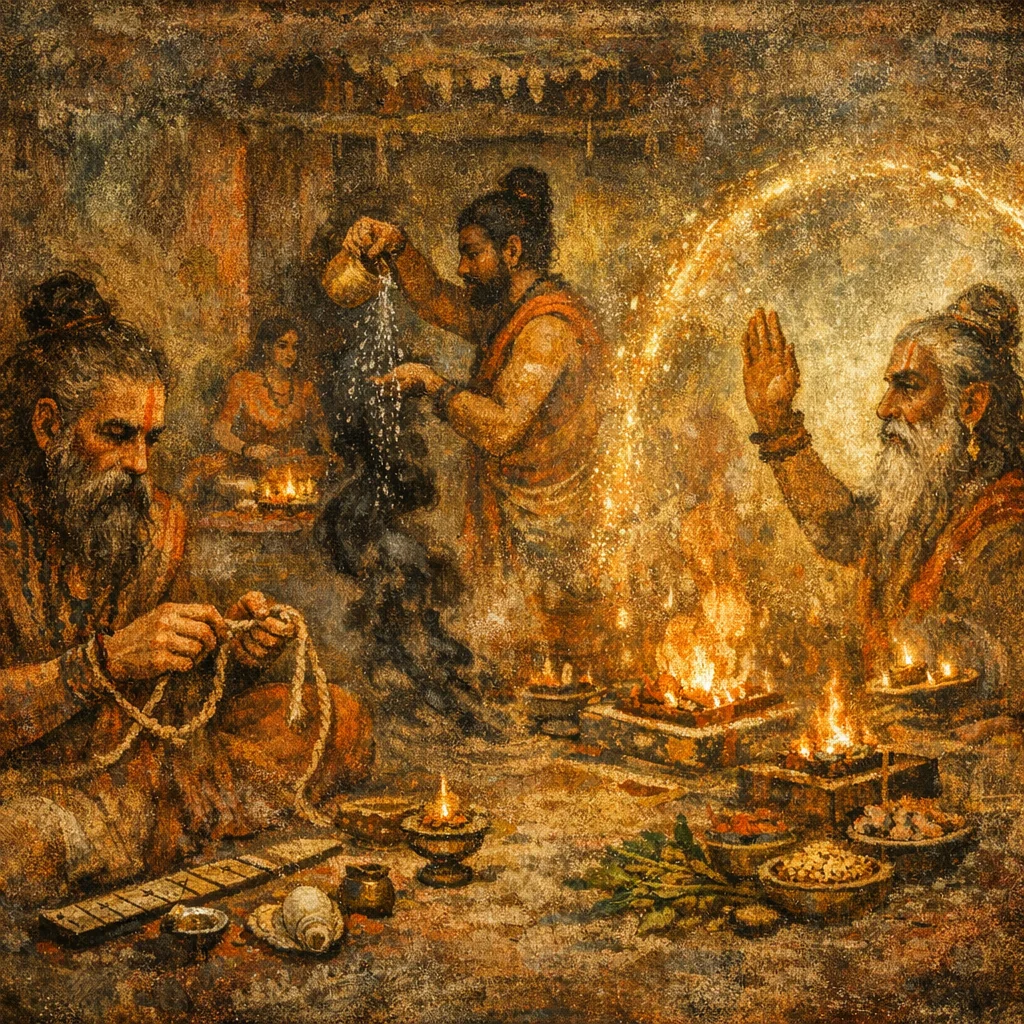 Each quarter can carry its own risks and powers; the south is ritually significant and must be propitiated so its ‘mahimán’ becomes protective rather than obstructive for the hall and rite.