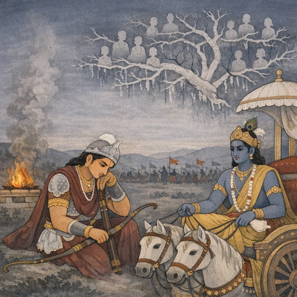 Arjuna argues from anticipated remorse: once one foresees harm, proceeding would violate self-trust and intensify later guilt.