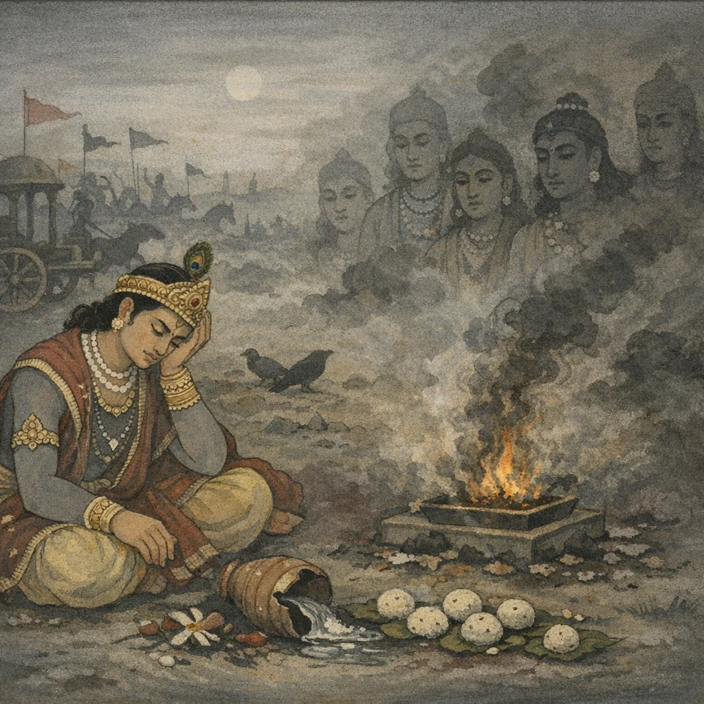 Most traditional readings emphasize ritual discontinuity (piṇḍa-udaka) as causing ancestral ‘fall’; academic renderings often treat this as a reflection of dharmaśāstra social-ritual ideology rather than a metaphysical claim requiring assent. No major variant is commonly noted for this pāda in standard recensions, but CE confirmation is recommended.