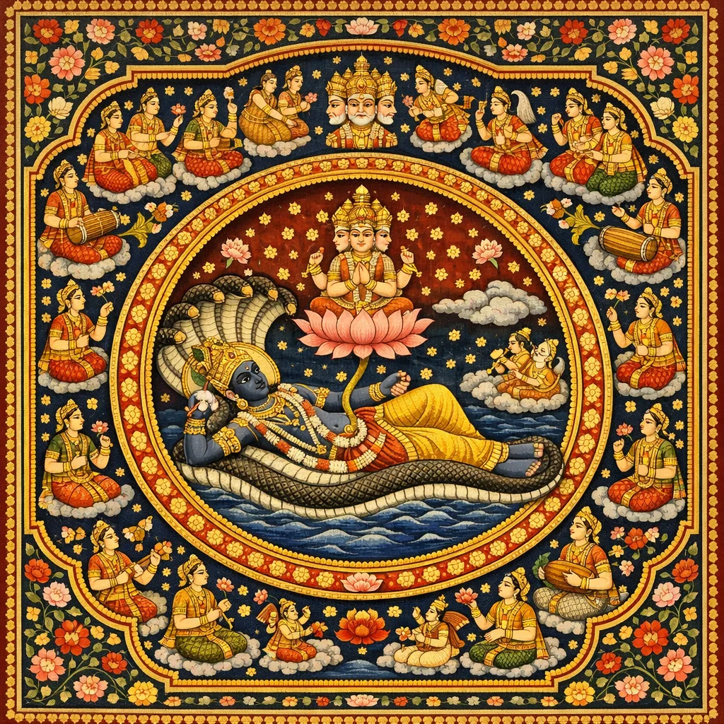 For more than a thousand years the radiant egg lay upon the waters of the Causal Ocean in a lifeless state. Then the Lord entered it as Garbhodakaśāyī Viṣṇu.