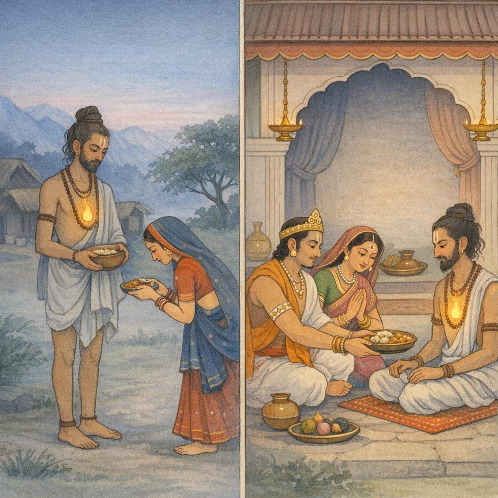 It disciplines ego (ahaṃkāra), reduces performative religiosity, and reinforces aparigraha; by taking only what is necessary and remaining vigilant, the bhikṣu turns livelihood into sādhanā.