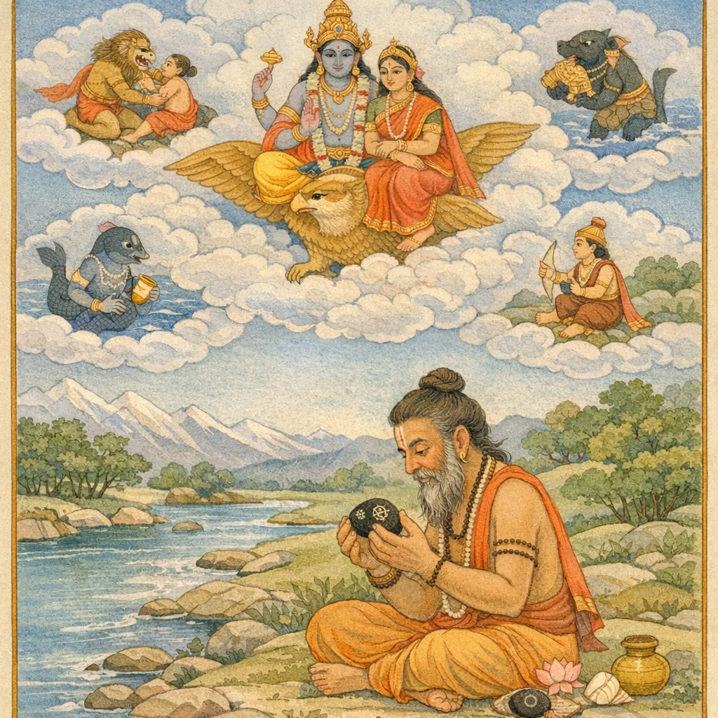 Śālagrāma-lakṣaṇa: Viṣṇu Stotra, Vyūha/Avatāra Identification, and Temple-Fruition