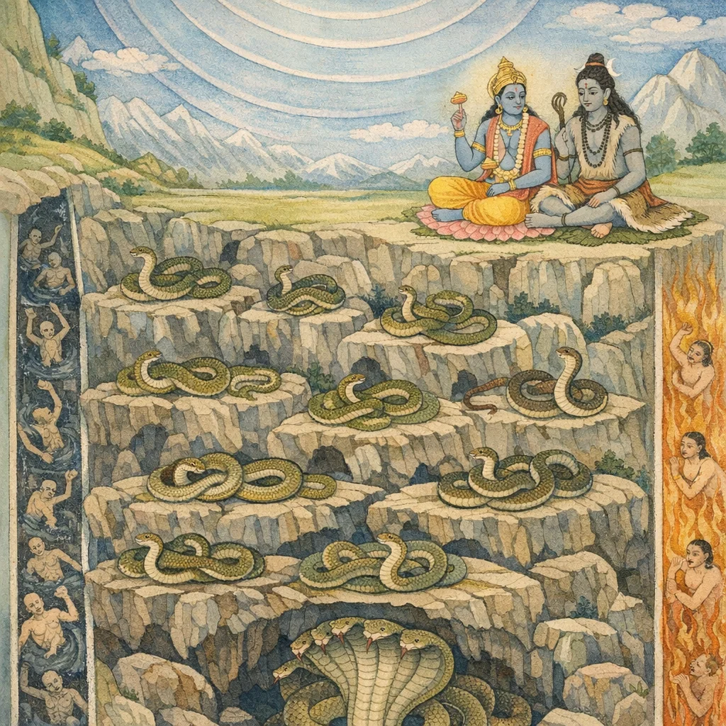 Pātāla and Naraka Enumeration; Brahmāṇḍa-Āvaraṇa and Nārāyaṇa’s Pervasion