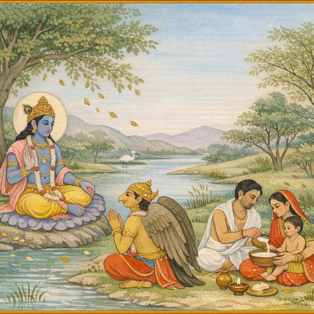 One should perform all the prescribed rites, and also give in charity such items as a water-pot and sweet rice (pāyasa). O best of birds, Garuda, such giving becomes a bond for the repayment of debts (ṛṇa).