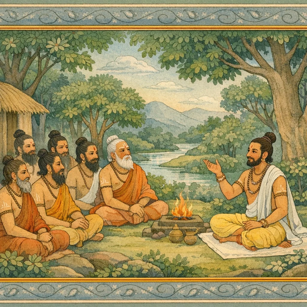 Chapter Arc: शौनक ऋषि सूत से आग्रह करते हैं—कद्रू-विनता के वरदान, शाप और गरुड़-वृत्तांत तो सुनाया, पर नागों के नाम अभी तक नहीं बताए; वे ‘प्राधान्येन’ प्रमुख नागों के नाम सुनना चाहते हैं। → सूत, ऋषि-सभा की जिज्ञासा को तृप्त करने हेतु नागवंश की विशालता का संकेत देते हुए नाम-गणना आरम्भ करते हैं—शेष, वासुकि, ऐरावत, तक्षक, कर्कोटक आदि से लेकर अनेकानेक पन्नगों की सूची बहने लगती है, मानो अनन्त फणों की माला। → नामों की धारा चरम पर पहुँचती है और सूत स्पष्ट करते हैं कि पन्नगों की संख्या ‘सहस्राणि, प्रयुतानि, अर्बुदानि’—अगणनीय है; पूर्ण गणना असंभव, केवल प्रमुख नाम ही कहे जा सकते हैं। → सूत प्रमुख नागों के नामों का कथन कर सभा की मांग पूरी करते हैं और नागकुल की अपरिमितता का बोध कराते हुए अध्याय को समापन देते हैं।