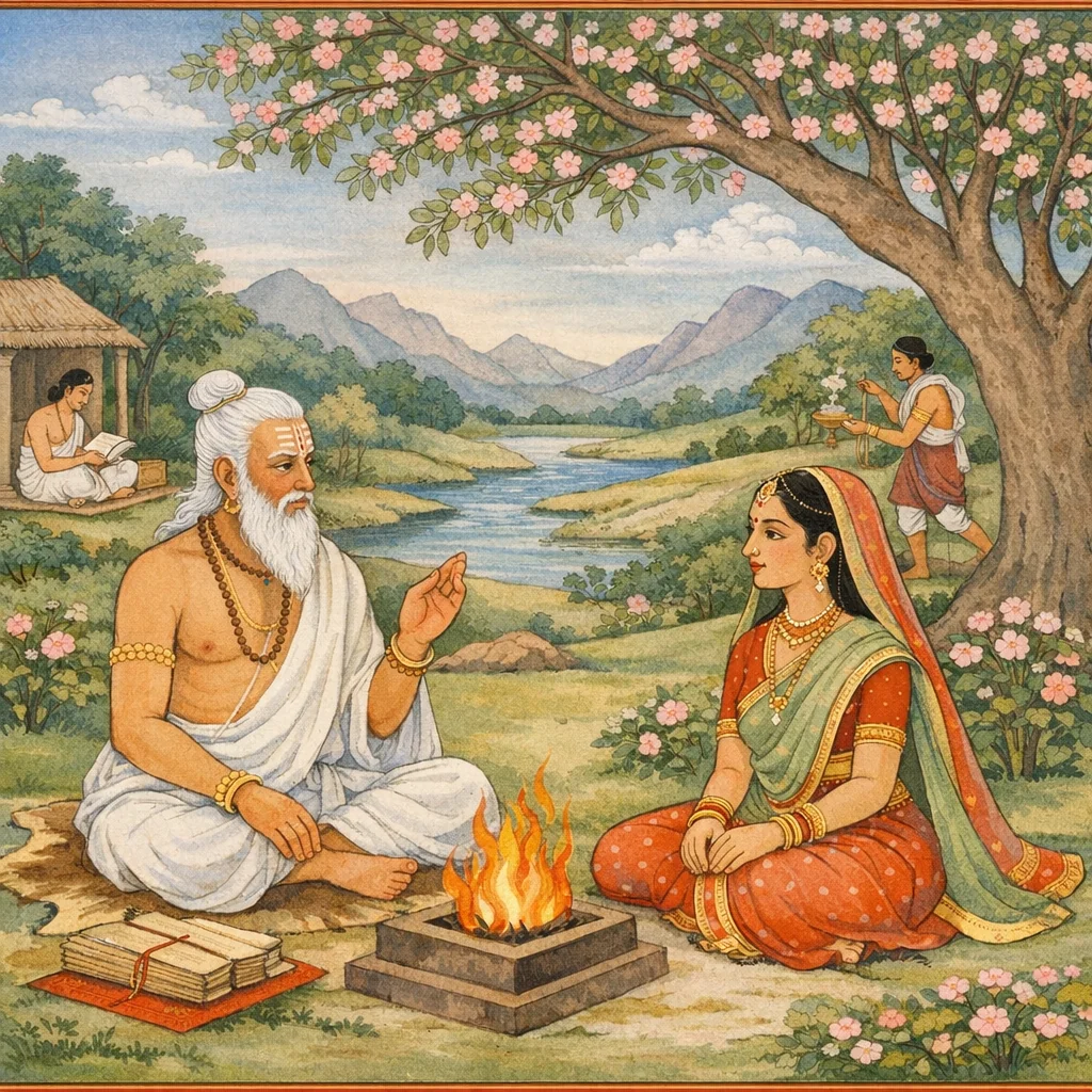 Chapter Arc: गिरिराजकुमारी के समक्ष भीष्म धर्म का सूक्ष्म रहस्य खोलते हैं—गृहस्थ ब्राह्मण का नित्य कर्तव्य क्या है, और विद्या को जीविका बनाना क्यों पतन का द्वार है। → उपदेश कठोर कसौटी पर चढ़ता है: संहिता-पाठ, शास्त्र-स्वाध्याय, आहिताग्नि और सत्य-पथ—ये ब्राह्मणत्व के बाह्य चिह्न नहीं, अंतःशुद्धि के प्रमाण हैं। फिर भीष्म चेताते हैं कि जन्म से मिला ‘ब्राह्मण्य’ भी असुरक्षित है; योनिदोष, अनुचित प्रतिग्रह, और अपवित्र कर्म उसे गिरा सकते हैं। → गुह्य वचन प्रकट होता है—‘जिस प्रकार शूद्र धर्माचरण से द्विजत्व को प्राप्त कर सकता है, और ब्राह्मण स्वधर्म से च्युत होकर शूद्रत्व को प्राप्त होता है।’ जाति का सार कर्म-शुचिता और सत्य-आचरण में है; केवल जन्म नहीं, केवल वेष नहीं। → भीष्म निष्कर्ष देते हैं: गृहस्थ ब्राह्मण को प्रतिदिन अध्ययन-स्वाध्याय करना चाहिए, पर उसे व्यापार नहीं बनाना चाहिए; सत्पथ, सत्य, आहिताग्नि और शुचि कर्मों से ही ‘ब्रह्मभूय’ की पात्रता बनती है। ब्राह्मण्य की रक्षा आत्मसंयम से होती है, न कि दंभ से। → यह ‘गुह्य’ सिद्धांत आगे के उपदेशों के लिए द्वार खोलता है—कौन-से कर्म ब्राह्मणत्व को स्थिर करते हैं और कौन-से उसे गिराते हैं, इसकी सूक्ष्म सूची आगे विस्तार मांगती है।