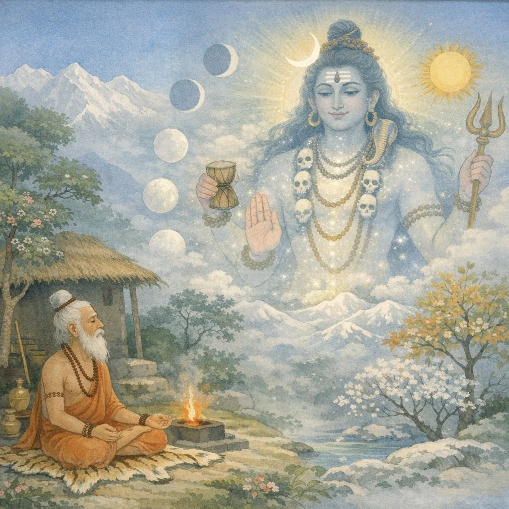 Vāyudeva said: “Death, Yama, and Agni; the mighty Time that rushes on for dissolution; the supreme source of Time; and the eternal principle in which Time itself comes to an end—these are all Mahādeva.”