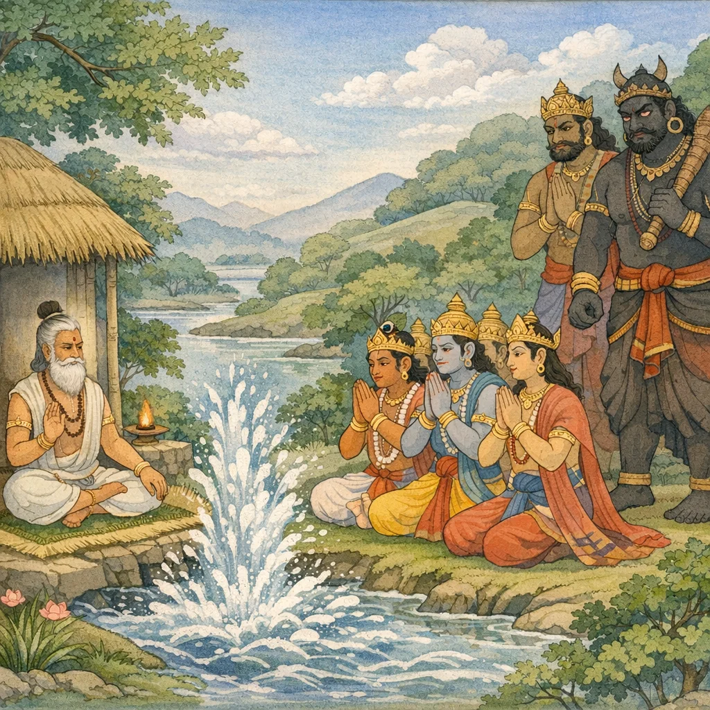 आदित्या: सत्रमासन्त सरो वै मानसं प्रति । वसिष्ठ॑ मनसा गत्वा ज्ञात्वा तत् तस्य गौरवम्,“एक समय देवताओंने वसिष्ठ मुनिके गौरवको जानकर मन-ही-मन उनकी शरण जाकर मानसरोवरके तटपर यज्ञ आरम्भ किया